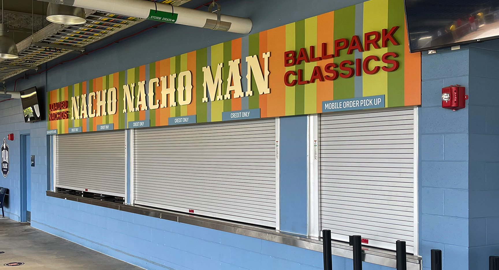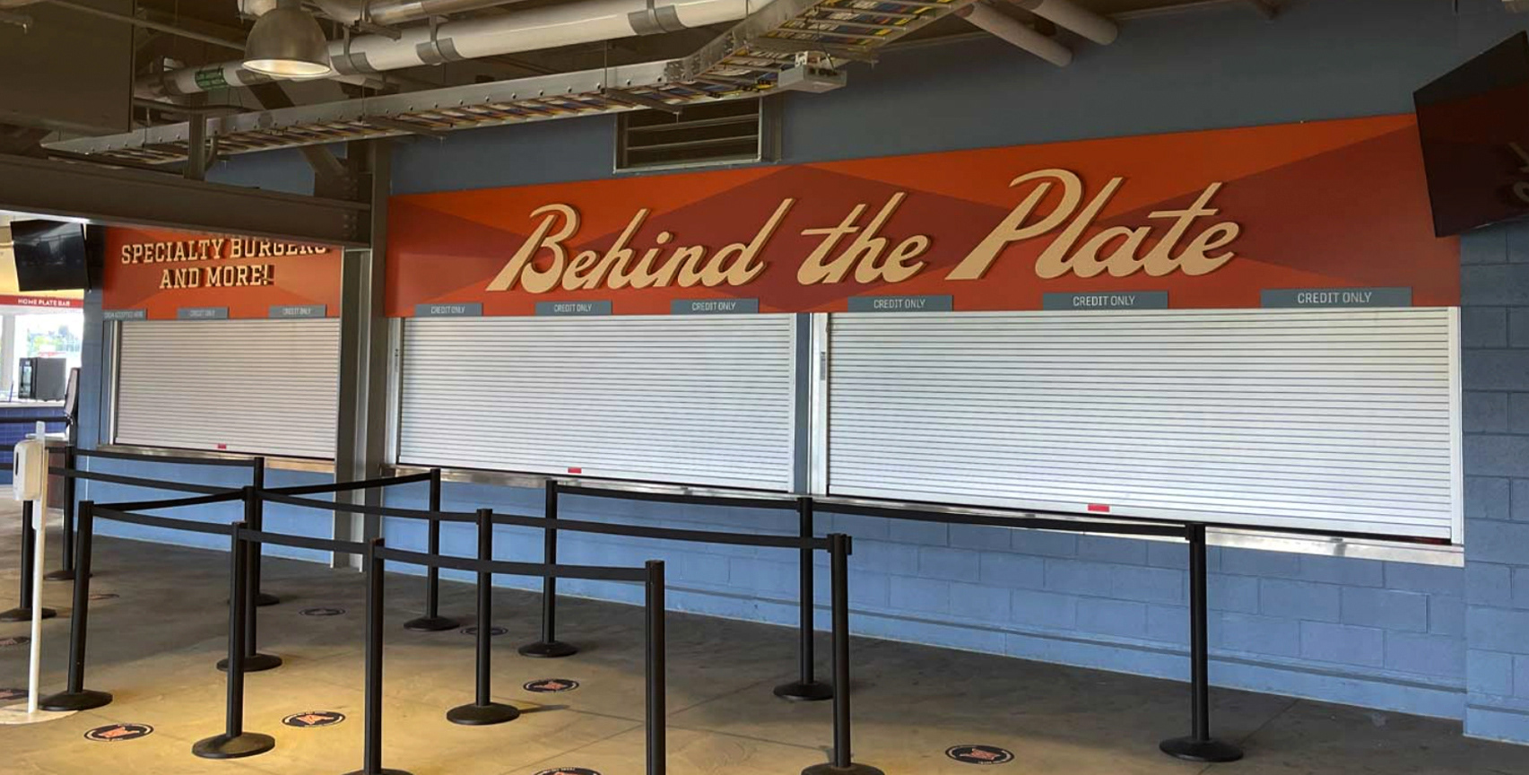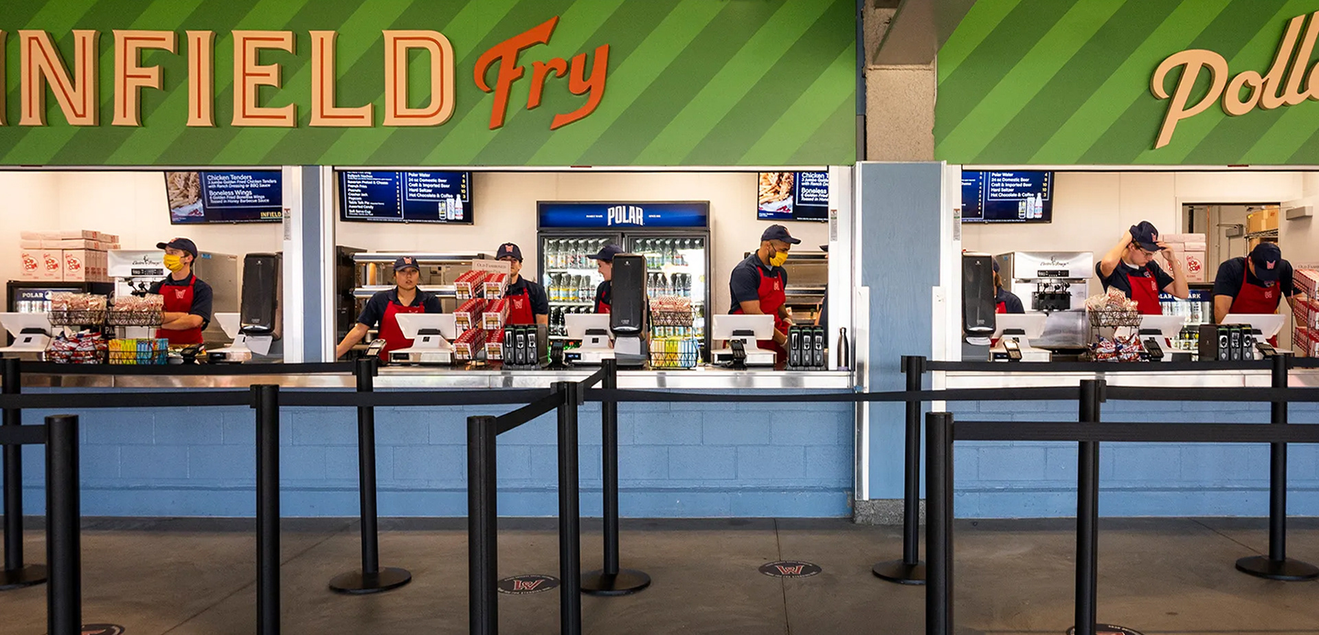 While I started with an existing slab-serif typeface, I manually adjusted the serifs and letterforms to make the proportions work perfectly for large-scale environmental use. The final results show how these brand standards translated into the physical space. While the senior designer handled the fabrication and signage details, I focused on the logos, brand marks, and the concessions that defined the stadium’s visual character.