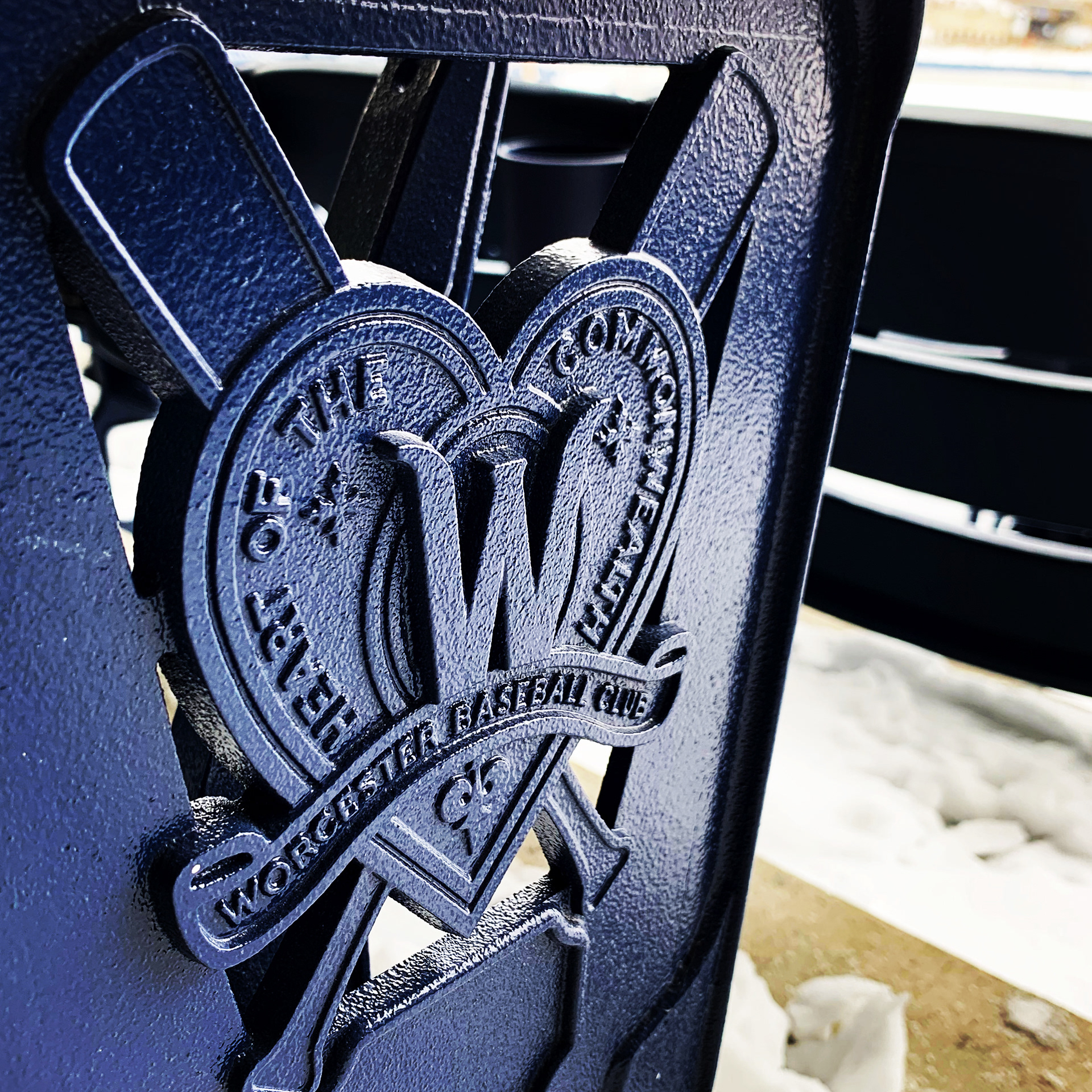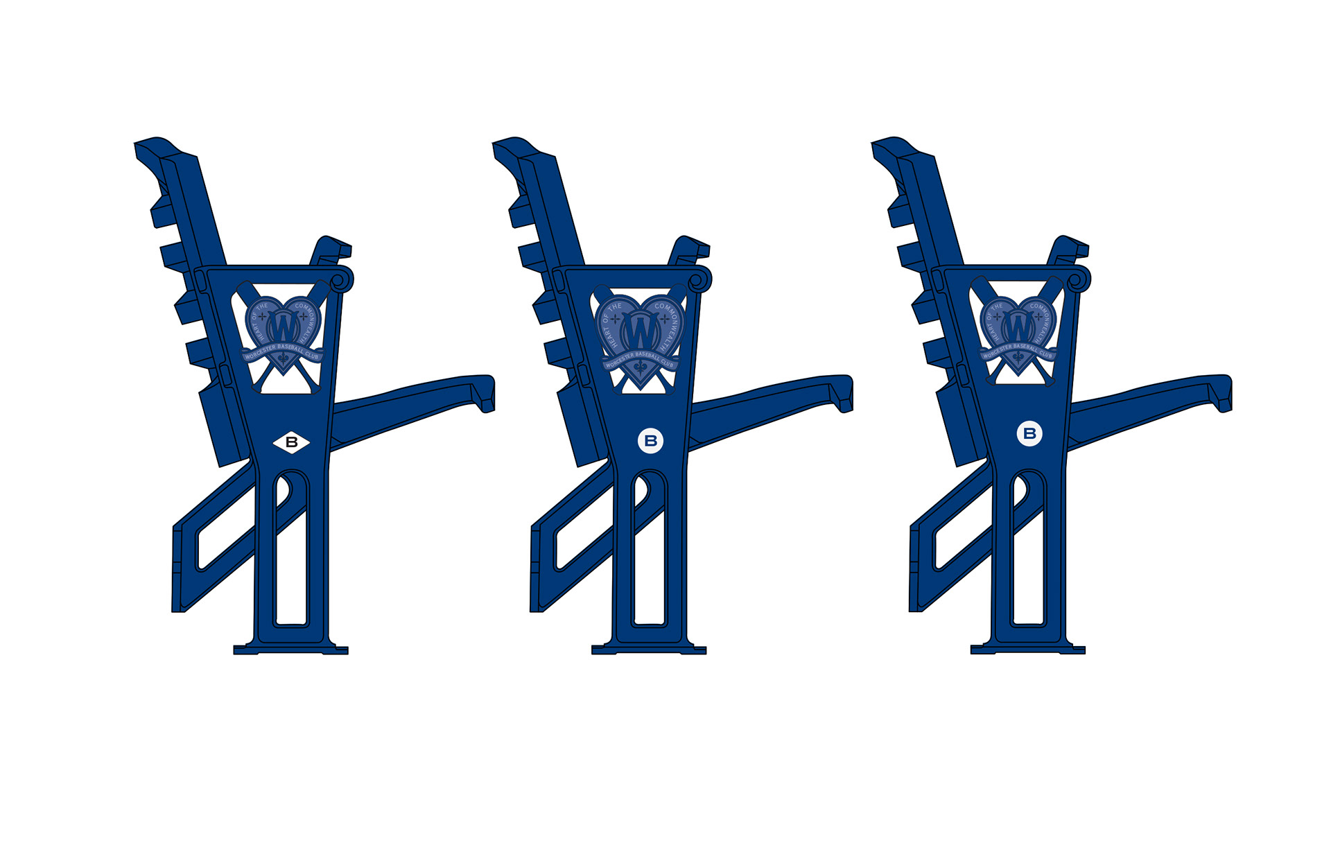 This insignia was developed for the stadium’s cast iron seat ends, inspired by historic Worcester baseball ephemera. I designed the final composition from the ground up.